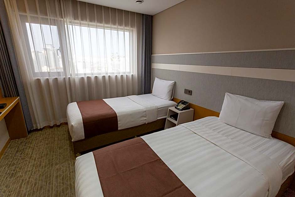 The twin room includes a private bathroom fitted with a shower, a hairdryer and slippers. The air-conditioned twin room offers a flat-screen TV with streaming services, a tea and coffee maker, a wardrobe, a safe deposit box as well as city views. The unit has 2 beds.